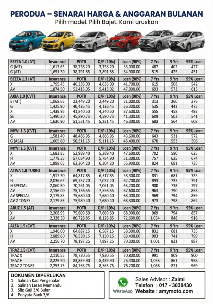 Kira ansuran bulanan anda dengan harga OTR terkini 2026.